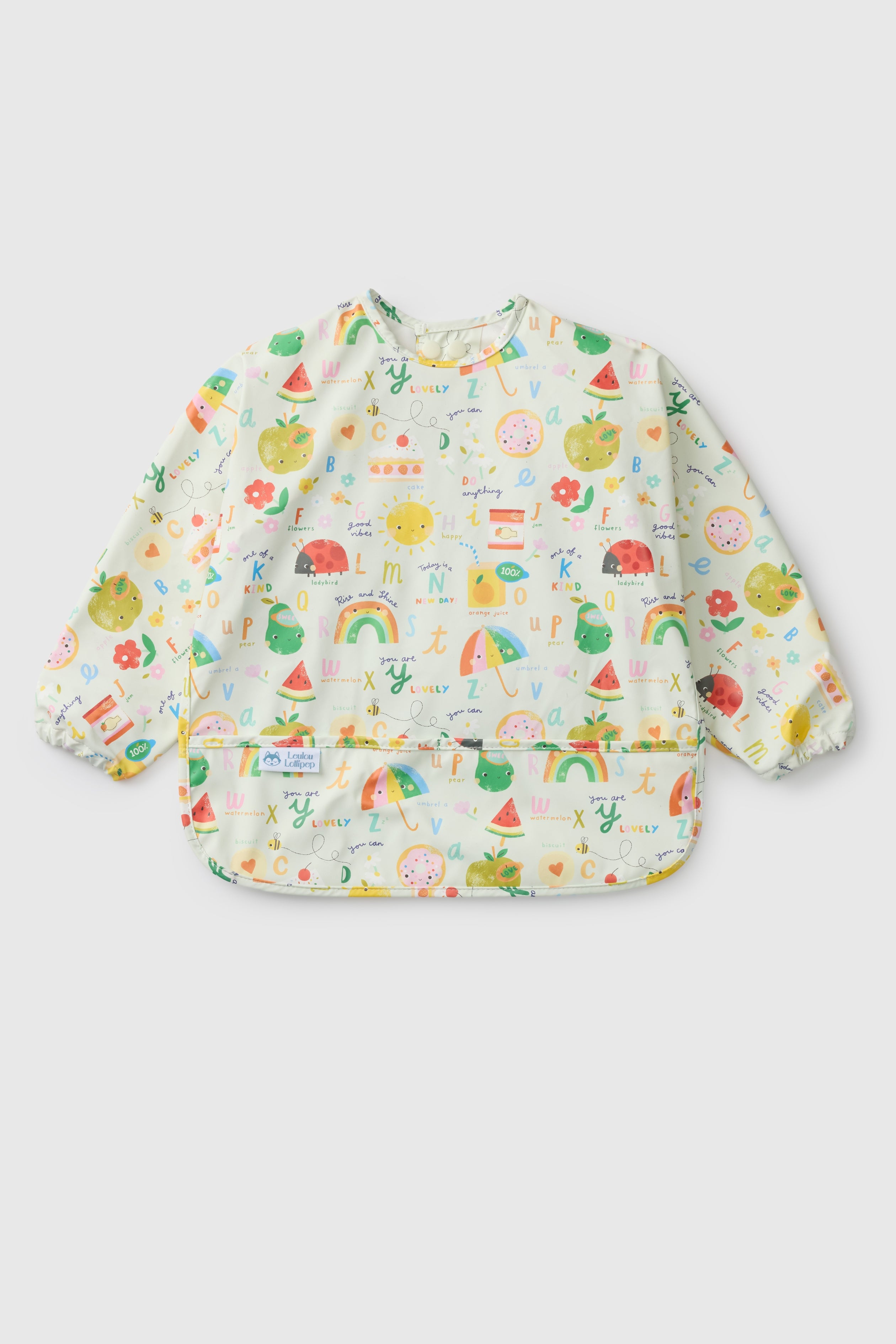 Hate doing extra laundry? Well, this full-coverage bib just became your saving grace. Our long sleeve waterproof bib is made with 100% responsibly sourced recycled polyester with TPU coating that is waterproof, stain, and odor resistant. Standard 100 by Oeko-tex certified. Designed with an adjustable neckline with snaps and elasticized cuffs allow for a comfortable fit that grows with baby to toddler from 6 months to 3 years old.
