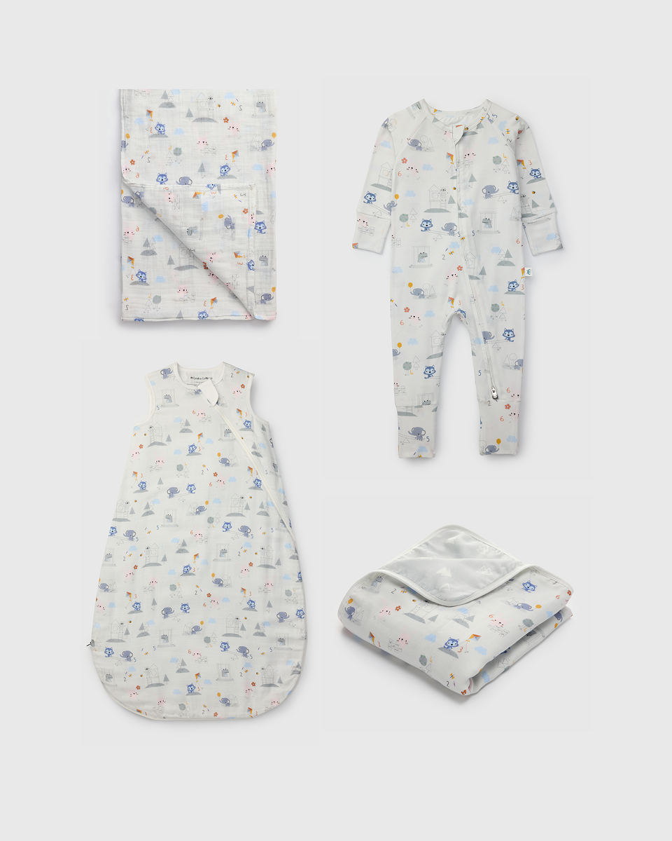Count sheep into dreamland with our Mini Mathletes Newborn Sleep Bundle! This cozy set includes a lightweight 0.5 TOG muslin sleep bag to keep baby comfortable all night, paired with our silky-soft TENCEL™ sleeper, made from sustainable fibers that are gentle on delicate skin. The versatile muslin swaddle is perfect for wrapping, cuddling, or adding an extra layer of comfort, while the four-layer muslin quilt offers cozy warmth for naps, stroller rides, or quiet playtime.