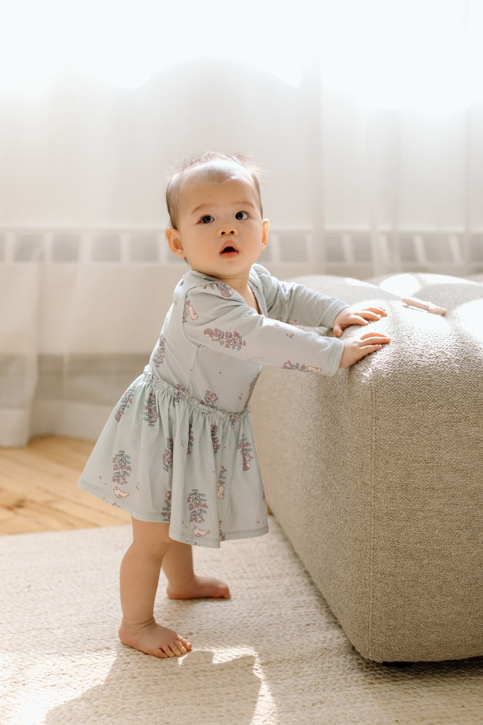Lap shoulder neckline to make changing even the squirmiest baby quick and hassle-free